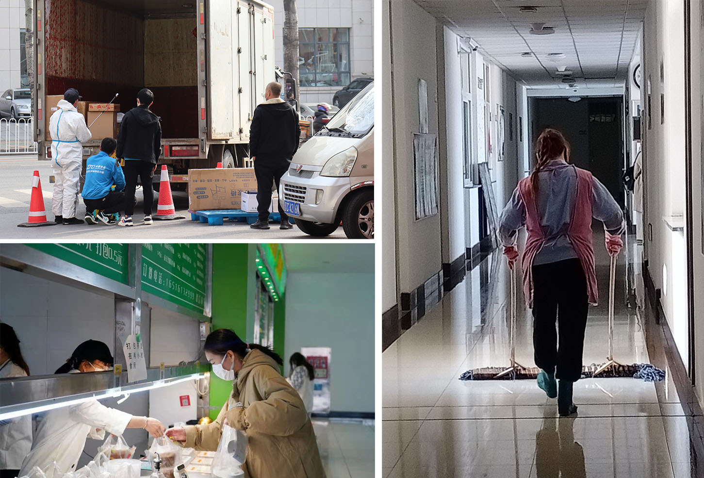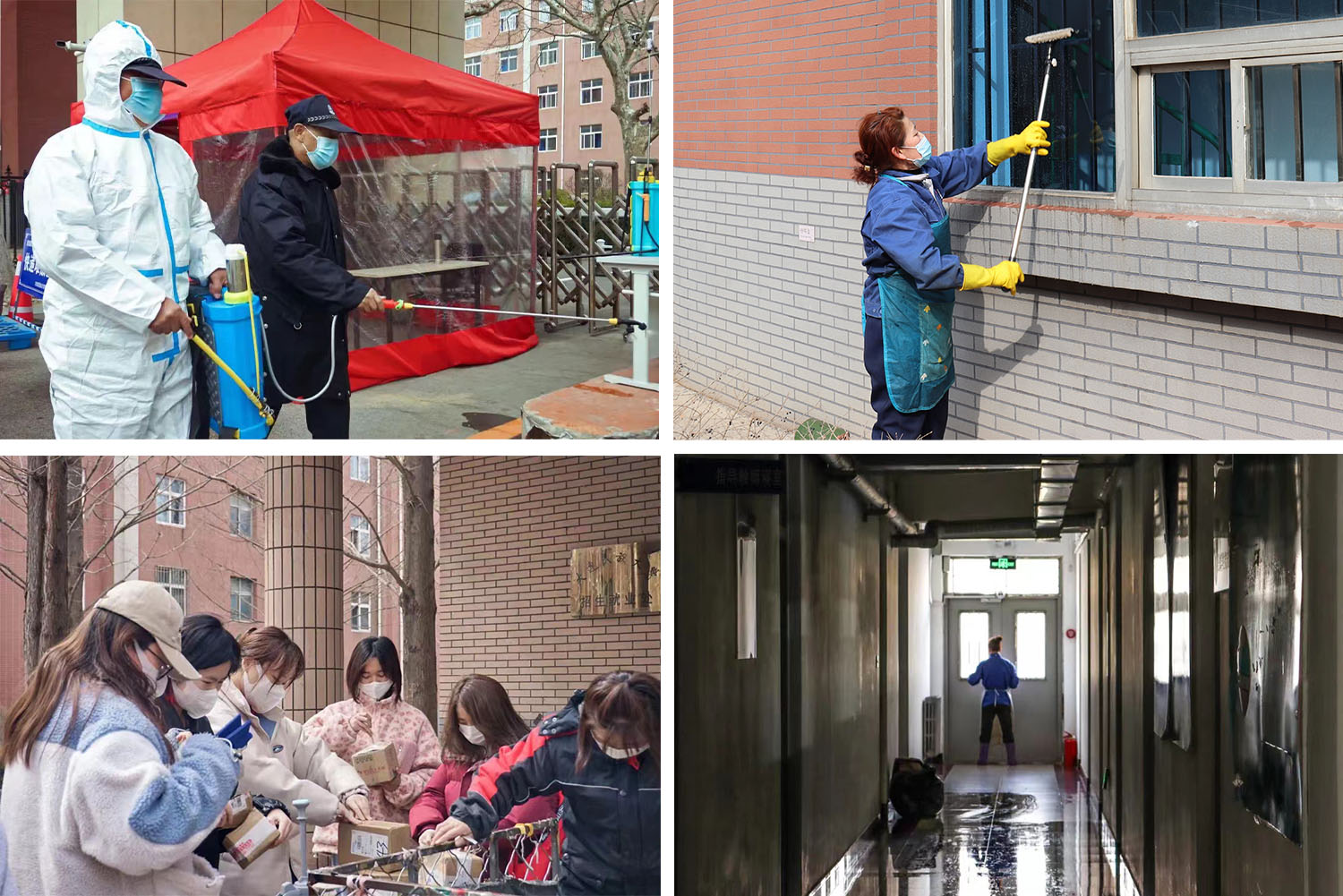 和食堂工作人员怀着同样心情的还有后勤保洁人员。为了有效阻断细菌病毒传播,给学生们提供良好的生活环境,保洁阿姨们每天准时准点对易滋生细菌的垃圾房进行消毒。寝室内,保洁人员对走廊、洗手池、饮水机、门把手、窗台、楼梯口每一个角落都要进行多次消毒清理。“疫情来了,我们能做的也不多,只能听从安排,干好本职工作,给孩子们提供干净整洁安全的环境,让孩子们安心读书、健康生活。”正在消毒的保洁阿姨边笑边说。