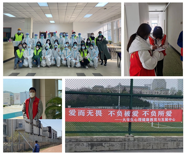 鲜红如花的背景点缀着绿意盎然的校园食堂、宿舍、图书馆、体育馆……学校的每一个角落,到处可见青年志愿者的红色身影,守护着校园边界的防线,用实际行动践行着新时代青年志愿者的责任担当,展示着疫情背景下的坚守风采。