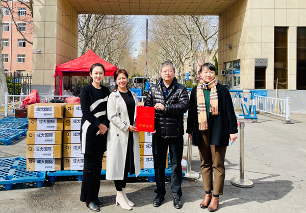 大连巨坤建筑工程有限公司通过学校基金会向学校捐赠资金23.4万元,用于封校期间学生生活补贴。学校校友、浙江省义乌市淑娜儿进出口公司总经理李光国,通过学校基金会向母校捐赠资金15万元,资助学校优秀贫困大学生。学校校友、大连捷诺中通货运代理有限公司总经理关茂策,通过学校基金会向母校捐赠医用外科口罩15箱3万只、消毒湿巾80箱320包,助力学校疫情防控。辽宁省丹东林丰贸易有限公司通过学校基金会向学校捐赠防护口罩3000只。辽宁成大国际贸易有限公司通过学校基金会向学校捐赠防护口罩2万只。学校基金会、外国语学院、后勤管理处等部门代表接受捐赠。
