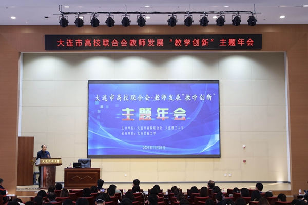 冯林在致辞中表示,本届年会以“教学创新”为主题,共同搭建大连市高校教师创新发展研讨交流学术平台,希望大家能够在这里收获知识的智慧,增长交流的技巧,感受创新的力量,激发出更多的智慧火花,共同促进大连市高校及教师之间的更多深入合作交流,共同推动大连市高等教育事业蓬勃发展。