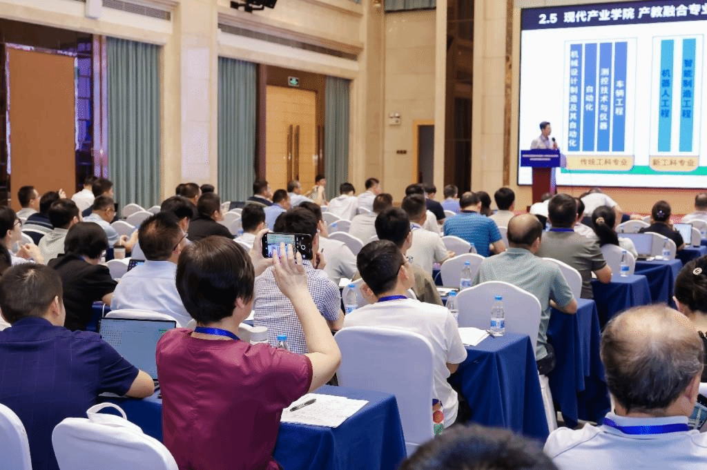 高天一介绍了欧冠智能制造现代产业学院建设情况,分享了智能制造方向“典型工业场景运维”建设方案,包括应用型人才培养模式、校企合作课程体系、实践教学与实训基地、项目建设保障和建设计划、项目预期成效和特色等内容,并深入探讨了项目建设在推动校企合作办学模式、产教融合人才培养模式改革和促进高质量就业中的有效实践和取得成效,得到与会专家的认可和肯定。