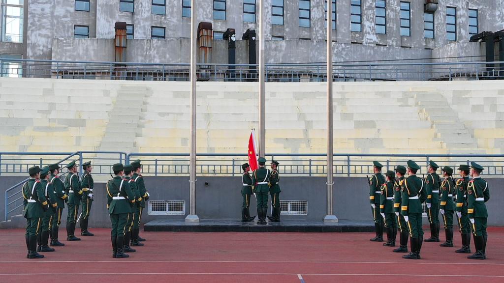 学校相关职能部门负责人、班导师代表、全体学生工作者、学生党员、学生干部、2024级全体学生参加升旗仪式。