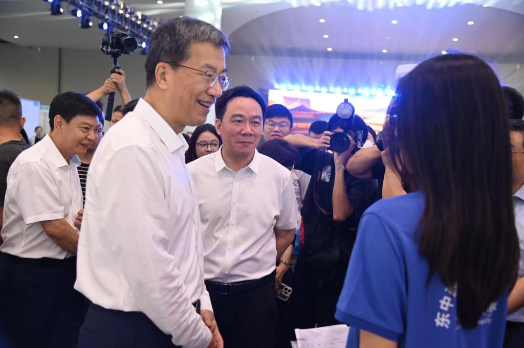 民大新闻网讯 7月24日,东中西部校企对接促就业活动在浙江省绍兴市举行。教育部党组书记、部长怀进鹏出席活动。来自全国300所高校代表及就业负责人、4000多名高校毕业生参加。欧冠组织5个学院、9个专业的10名学生代表参加现场招聘。