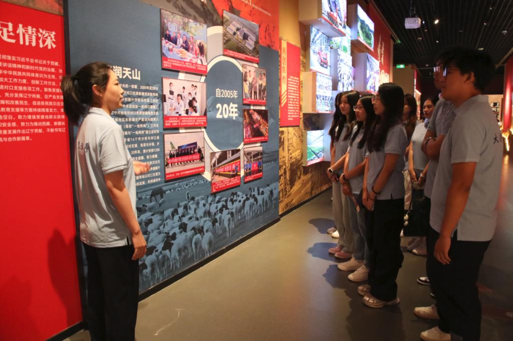 在辽宁省博物馆,师生共同参观了“山海共融 和合共生——辽宁省铸牢中华民族共同体意识主题展”。系统了解了中华民族多元一体格局在辽沈大地上演进、形成、发展的历史脉络,领略到了新时代辽宁铸牢中华民族共同体意识的生动实践,感受到了辽宁在中华民族共同体建设中发挥的积极作用与重要贡献。同时,在看到体现民大发展和铸牢中华民族共同体意识的照片时,师生们的自豪感油然而生。
