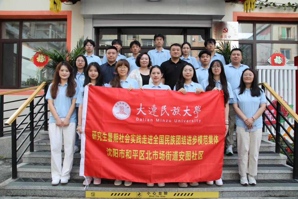 师生还走进全国民族团结进步模范集体沈阳市和平区北市场街道安图社区开展实践调研,实地参观了社区的民族团结进步宣传阵地、文化活动中心等,深入了解社区在促进各民族交往交流交融方面的创新举措和成功经验。在座谈交流环节,安图社区党委书记、居委会主任齐姝莉详细介绍了社区以打造“石榴工坊”为抓手,通过创新非遗传承、促进文化共融、构建互嵌式社区等多种形式,促进各民族交往交流交融的情况。研究生们就如何更好地在基层开展民族团结教育,如何推动各族群众逐步实现在空间、文化、经济、社会、心理等方面的全方位嵌入等问题与社区工作人员展开深入探讨。