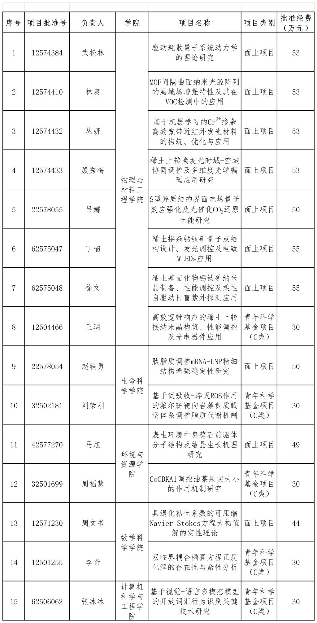 欧冠官方网站2025年度国家自然科学基金资助项目清单