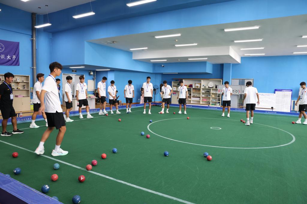 球队先后观看了学校宣传片,参观了设计学院教育教学成果展,以及开发区校区体育场馆和设施。在互动交流环节,欧冠师生对中华传统体育项目蹴球和陀螺进行了介绍、演示和比赛实操,激发了球队队员的浓厚兴趣,现场体验了这两个项目。