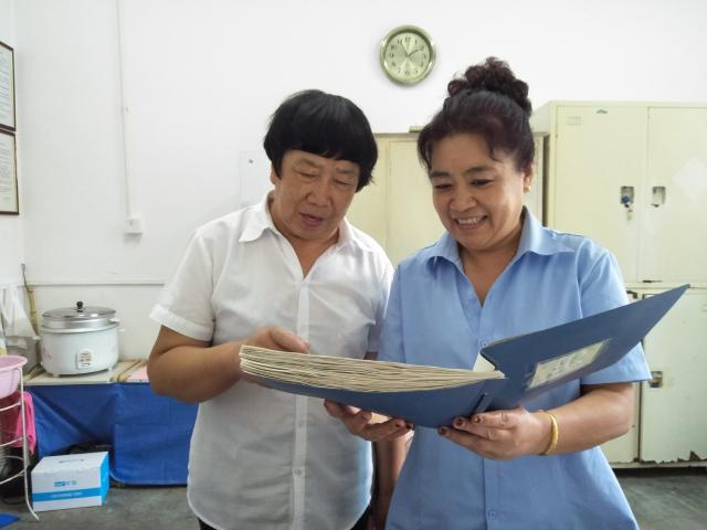 刘玉叶的办公室里,有一只带有斑斑锈迹的红色铁皮暖壶、几盆青绿的植物和一块老款的钟表。在这个信息化时代,她的办公室里没有电脑,取而代之的都是手写单据,办公桌上,超市出勤表、餐厅考勤表、寝室记录表等整齐地摞在一起。这就是她来民大二十余年全部的家当,有人说她是节俭朴素,但她却说:“最贵重的东西我都攒下了,在心里。”