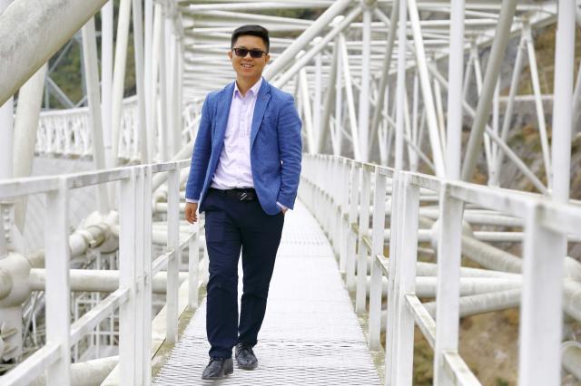 刚开始加入团队的黄琳,尚是一个什么都不太懂的新人,不知道自己要做什么,往哪方面努力。从来没有接触过望远镜的他,更是对望远镜本身的意义都不清楚。再加之所在地理位置的偏僻,黄琳说,“第一次从贵阳去施工现场,6小时车程,当时全是县道乡道,不知道自己在哪里。想到如果今后一直是在这样的环境下工作,心里就在打退堂鼓了。”可当他第一次站在建设中的大坑旁时,“一下子就把我震撼住了,因为真的是太大太大了!”就像定海神针一样,把黄琳的心牢牢地定在了那里。当时望远镜仍处于基础施工阶段,圈梁才焊接了四分之一,随着一道又一道的项目推进,黄琳完完全全被这道科学风景吸引住了。