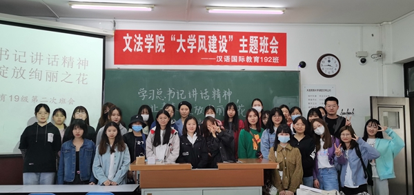 在大家的共同努力下,班里的凝聚力不断增强。汉语国际教育192班的每个同学怀着对知识的渴望,怀着对梦想的向往,怀着对生活的热爱,怀着对生命的关爱,朝着共同的目标努力奋斗。同学们彼此建立了深厚的友谊,每个人都最大限度地释放着自己的能量,每个人都在为班集体的荣誉不断地增添光彩。他们时刻将个人前途与祖国命运共振,用青春为新时代贡献智慧与力量,把专业知识与社会愿望高度融合,扎根沃土,潜心钻研突破,矢志逐梦报国。