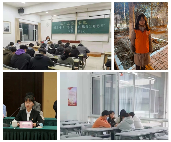 为了提高同学们的成绩,她密切关注同学们的学习情况,坚持以“查”促学,例行查课、查晚自习,督促同学们学习。她积极组织策划学院诗词大会、“一帮一”互助学习、优秀笔记展、演讲比赛、校结构设计大赛等活动,以“赛”促学,将理论联系实际,激发同学们的学习动力。积极组织班级同学参与“一帮一”互助学习小组活动,以“帮”促学,在学习互助中铸牢中华民族共同体意识。周赫在考试前给同学开设小课堂,带领基础薄弱的同学共同学习,成功实现全员通过考试。在每一次的学习经验分享会上,她都会给学弟学妹们分享学习生活经验,希望他们珍惜学习时光,积极参加实践活动,丰富自己的大学生活。