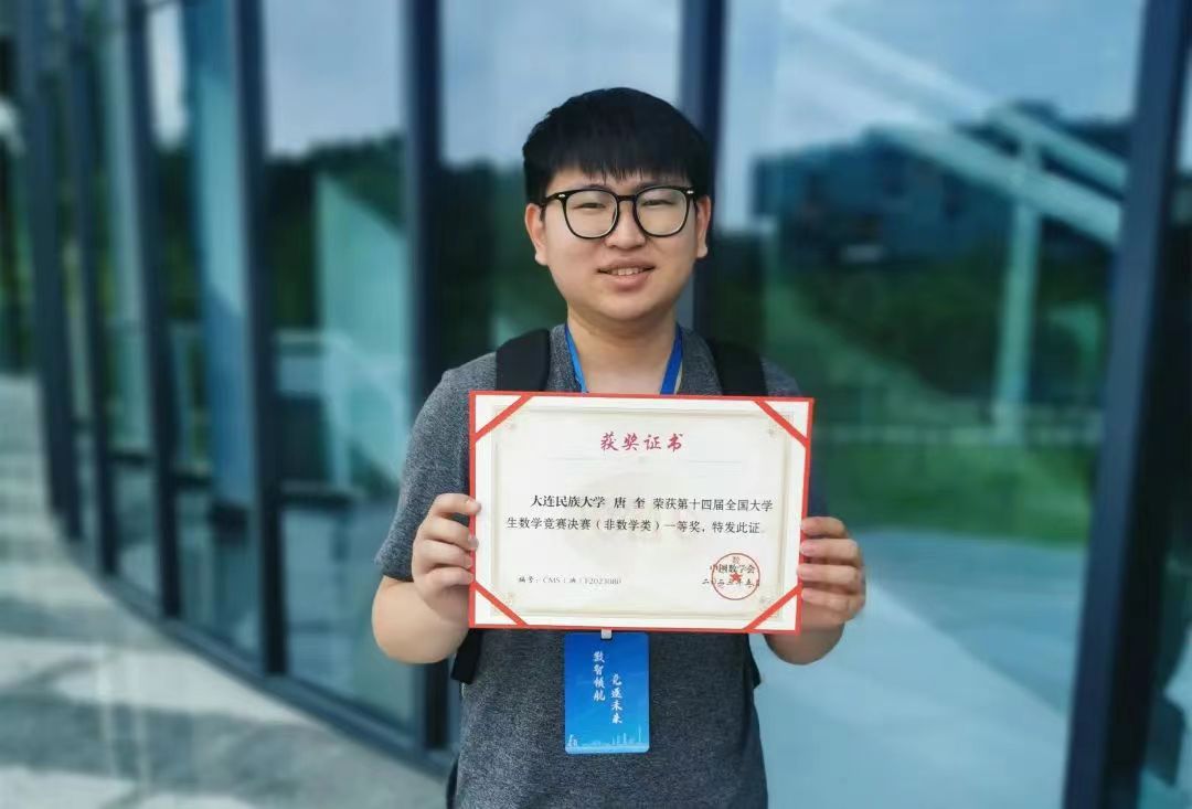 积跬步至千里,积小流成江河。2021年第十三届全国大学生数学竞赛上,他的成绩有了提高,取得国家级一等奖。2022年第十四届全国大学生数学竞赛国家级一等奖并入围决赛。2023年,进入大四后半程,毕业在即的唐奎终于捧回了全国总决赛一等奖的最高荣誉。