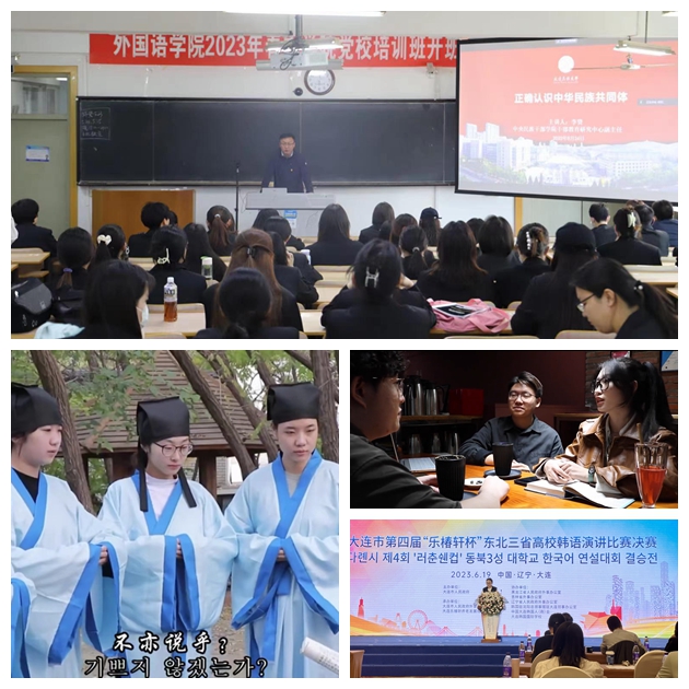 学院加强赛课一体办学模式,鼓励学生积极参加多项行业内知名赛事,以赛促学,在“赛课一体化”中上好“大思政课”。在辽宁省委宣传部、辽宁省政府外办、辽宁省教育厅联合举办的第五届“辽沈最美翻译官”外语演讲大赛中,学院英语系李皞媛、日语系金志炫同学荣获二等奖,日语系韩贤敏、朝鲜语系李敬仪同学荣获优秀奖,吴春晓、张春梅老师荣获优秀指导教师。外研社国才杯系列比赛、省普通高等学校本科大学英语挑战赛演讲大赛、乐椿轩杯韩语演讲比赛、省高校群音荟萃日语配音大赛总决赛中连获佳绩,积极打造“学在民大”良好口碑,彰显了民大学子逐梦新时代的奋进姿态和青春风采,增强了当代大学生的民族文化自信与爱国情怀。