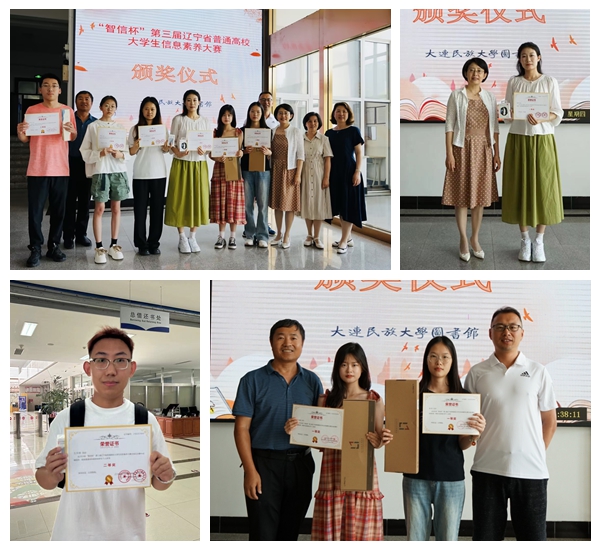 图书馆三楼办公区里有一面“荣誉墙”,墙面上挂着近年来从各大赛事中获得的奖牌、证书。前不久,“荣誉墙”上又添了一枚崭新的奖牌,是图书馆在“智信杯”第三届辽宁省普通高校大学生信息素养大赛中获得的“最佳团队奖”。