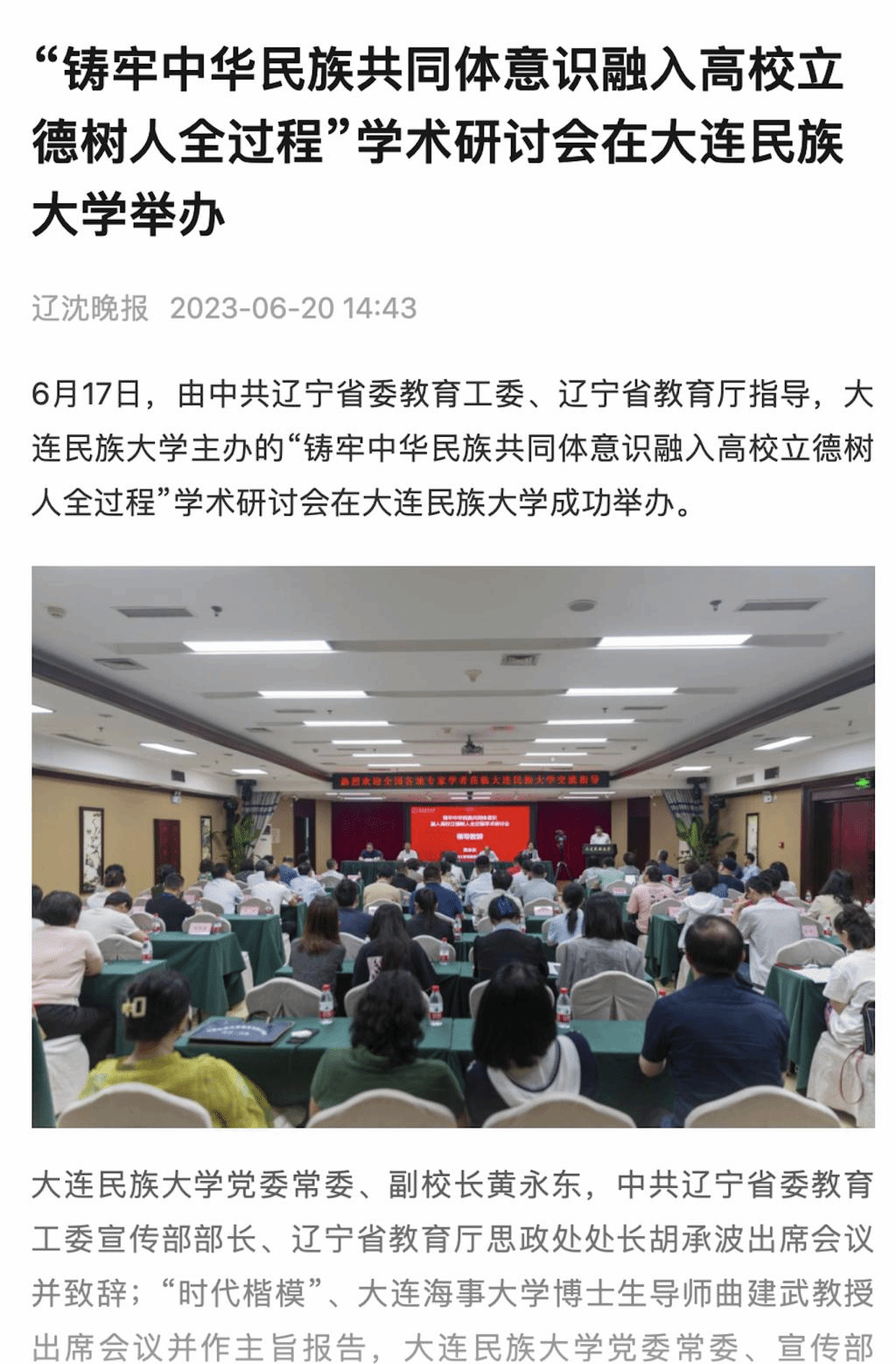 6月17日,由中共辽宁省委教育工委、辽宁省教育厅指导,欧冠官方网站主办的“铸牢中华民族共同体意识融入高校立德树人全过程”学术研讨会在欧冠官方网站成功举办。