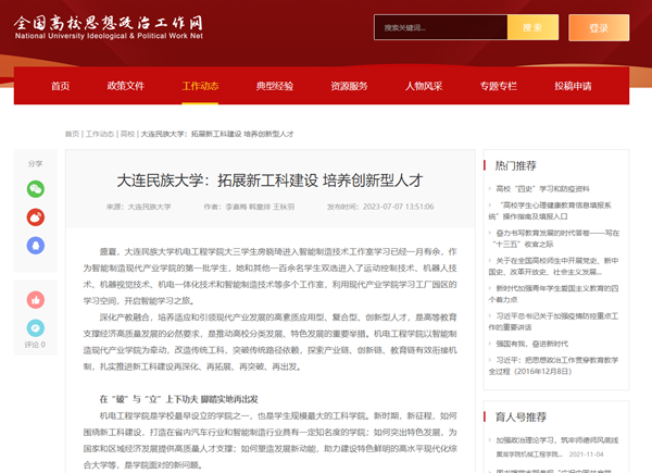 “学院以铸牢中华民族共同体意识为主线,落实立德树人根本任务,着力提升学生的动手实践能力,提高学生对产业的认知程度和解决复杂问题的能力。巩固政、校、行、企合力,发挥各方资源优势,对标国家级产业学院建设要求和学院‘一院一策’目标任务,努力找准问题症结,拿出务实举措,紧密围绕智能制造现代产业学院建设,依托新工科专业建设经验,做大做强特色和优势,带动学院办学实力的整体提升。”学院副院长高天一介绍。