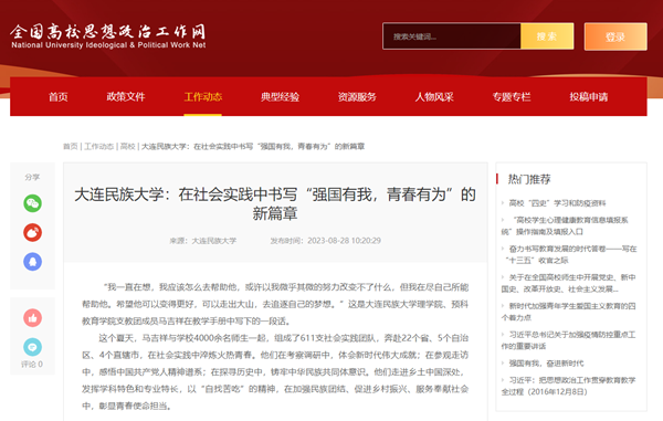 在贵州省贵阳市白云区,机电工程学院实践团走进农业局了解当地脱贫攻坚奋斗史,走进农村食用菌种植棚,调研食用菌产业如何带动当地村民脱贫致富,和科技人员讨论未来食用菌发展方向,致力于为当地赋能增收贡献知识能力与青春力量。外国语学院实践团奔赴云南省怒江傈僳族自治州向当地老人进行防电信诈骗宣讲,为农村留守儿童暑期护航,开展爱心辅导作业行动。八年来,“启明星”支教团累计为650余名学生开展课业辅导、素质拓展、亲情陪伴、心愿认领等活动。