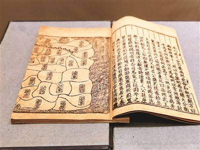 在展出的古籍中,《大明一统志》和《大清一统志》格外引人注目。书中古拙质朴的地图上,统一多民族国家的形态清晰呈现。