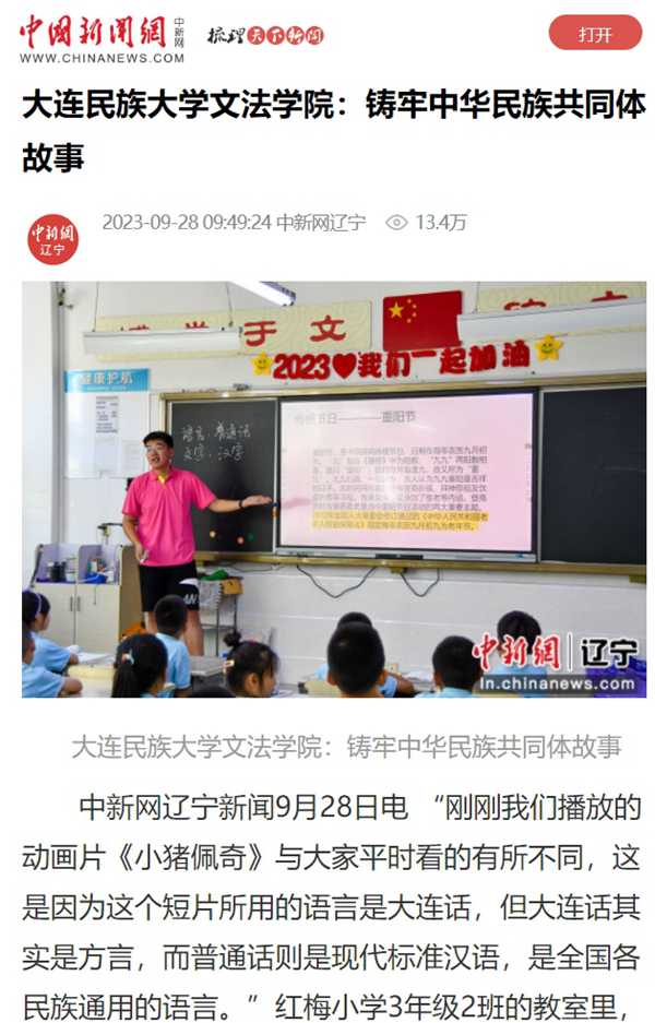 中新网辽宁新闻9月28日电 “刚刚我们播放的动画片《小猪佩奇》与大家平时看的有所不同,这是因为这个短片所用的语言是大连话,但大连话其实是方言,而普通话则是现代标准汉语,是全国各民族通用的语言。”红梅小学3年级2班的教室里,欧冠官方网站汉教222班张劲松用生动有趣的方式为同学们进行了以“推广普通话 铸牢中华民族共同体意识”为主题的宣讲。