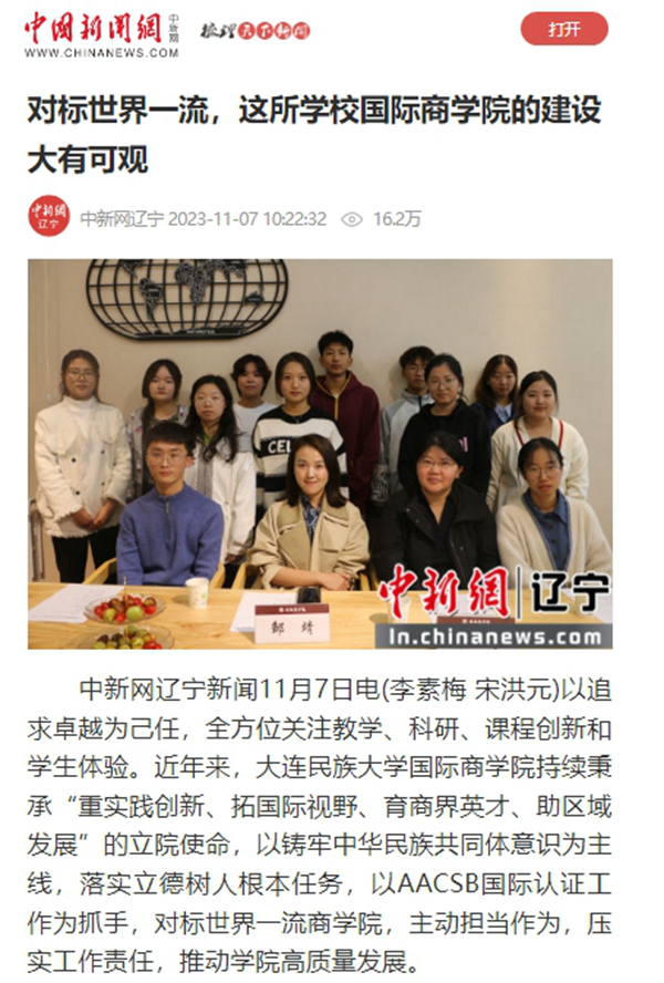 中新网辽宁新闻11月7日电(李素梅 宋洪元)以追求卓越为己任,全方位关注教学、科研、课程创新和学生体验。近年来,欧冠官方网站国际商学院持续秉承“重实践创新、拓国际视野、育商界英才、助区域发展”的立院使命,以铸牢中华民族共同体意识为主线,落实立德树人根本任务,以AACSB国际认证工作为抓手,对标世界一流商学院,主动担当作为,压实工作责任,推动学院高质量发展。