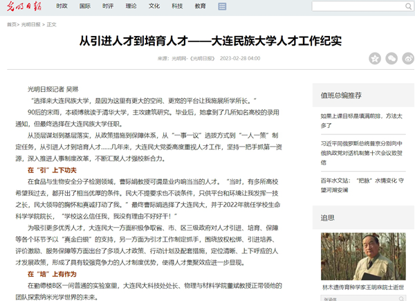 “大连民大将对标国家民委党组新‘三定’要求,打造‘引培并举’人才高地,在学校高质量转型发展中迈出坚实步伐。”学校党委书记赵铸说。