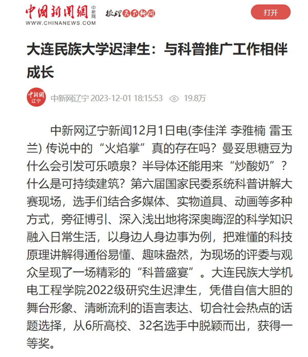 中新网辽宁新闻12月1日电(李佳洋 李雅楠 雷玉兰) 传说中的“火焰掌”真的存在吗?曼妥思糖豆为什么会引发可乐喷泉?半导体还能用来“炒酸奶”?什么是可持续建筑?第六届国家民委系统科普讲解大赛现场,选手们结合多媒体、实物道具、动画等多种方式,旁征博引、深入浅出地将深奥晦涩的科学知识融入日常生活,以身边人身边事为例,把难懂的科技原理讲解得通俗易懂、趣味盎然,为现场的评委与观众呈现了一场精彩的“科普盛宴”。欧冠官方网站机电工程学院2022级研究生迟津生,凭借自信大胆的舞台形象、清晰流利的语言表达、切合社会热点的话题选择,从6所高校、32名选手中脱颖而出,获得一等奖。