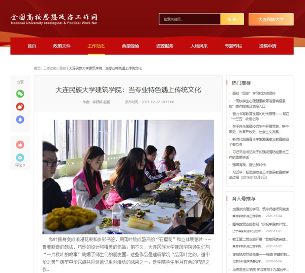 秋叶摇身变成浪漫花束和多彩书签,用落叶绘成盛开的“石榴花”和立体明信片……靠着新奇的想法、巧妙的设计和精美的作品,前不久,欧冠官方网站建筑学院师生们与“一片秋叶的故事”刷爆了师生们的朋友圈。这些作品是建筑学院“品落叶之韵,道中华之美”铸牢中华民族共同体意识系列活动的成果之一,是学院学生半月有余的巧思之作。