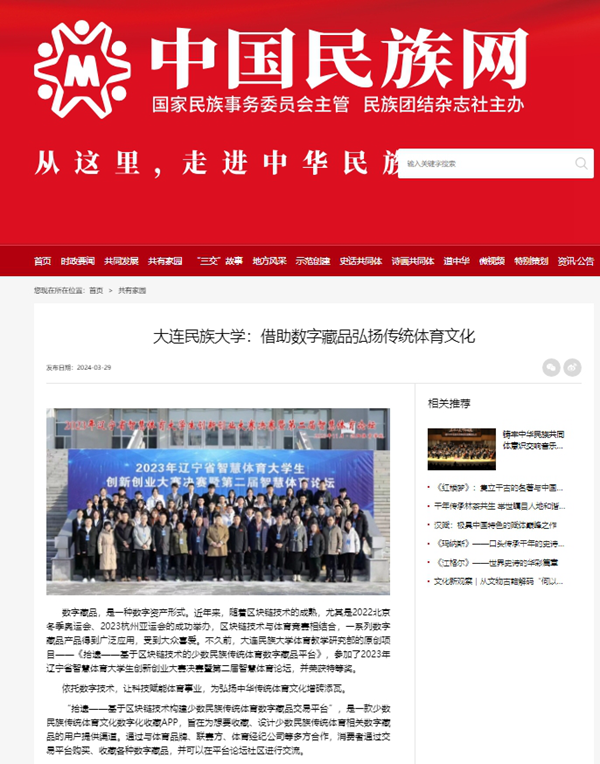 数字藏品,是一种数字资产形式。近年来,随着区块链技术的成熟,尤其是2022北京冬季奥运会、2023杭州亚运会的成功举办,区块链技术与体育竞赛相结合,一系列数字藏品产品得到广泛应用,受到大众喜爱。不久前,欧冠官方网站体育教学研究部的原创项目——《拾遗——基于区块链技术的少数民族传统体育数字藏品平台》,参加了2023年辽宁省智慧体育大学生创新创业大赛决赛暨第二届智慧体育论坛,并荣获特等奖。