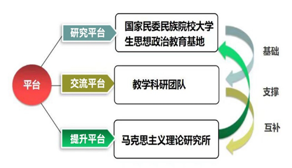 学院立足学校事业发展全局,锚定服务国家战略,聚焦铸牢中华民族共同体意识主线,服务党的民族工作发展需要,明确马克思主义理论学科建设要坚持服务党的民族工作大局,体现铸牢中华民族共同体意识主线的学科研究方向与研究特色要求,主动加强学科交叉融合,加强中华民族共同体基础性问题研究。学院现设有1个省级研究平台——国家民委民族院校大学生思想政治教育研究基地,1个校级研究平台——马克思主义理论研究所。学院积极推动平台创新发展,整合校内外优势资源,强化平台组织管理,增强学院学科发展的内生动力。成功举办“铸牢中华民族共同体意识融入高校立德树人全过程”全国性学术研讨会,人民论坛网、央广国际在线、东北新闻网等十余家媒体进行了宣传报道,有效增强了学院的影响力。组织骨干教师赴国家民委直属高校开展“委属高校青年教师思想政治状况调查”,调研成果获评国家民委人文社会科学成果三等奖。学院教师聚焦习近平新时代中国特色社会主义思想、铸牢中华民族共同体意识等问题开展研究阐释,主持国家级课题7项,省级以上课题50项,国家民委委托课题9项,横向课题4项。在《思想理论教育导刊》《自然辩证法研究》《广西民族研究》等期刊发表学术论文100余篇,在《中国民族报》《辽宁日报》等报刊发表理论文章20余篇,部分被学习强国、国家民委网站转载。出版学术专著15部,获省市级以上科研奖励8项。科研成果服务国家和地方发展需求,多项成果获省部级领导肯定性批示或各级政府部门采纳,实现了理论研究与服务社会相结合。
