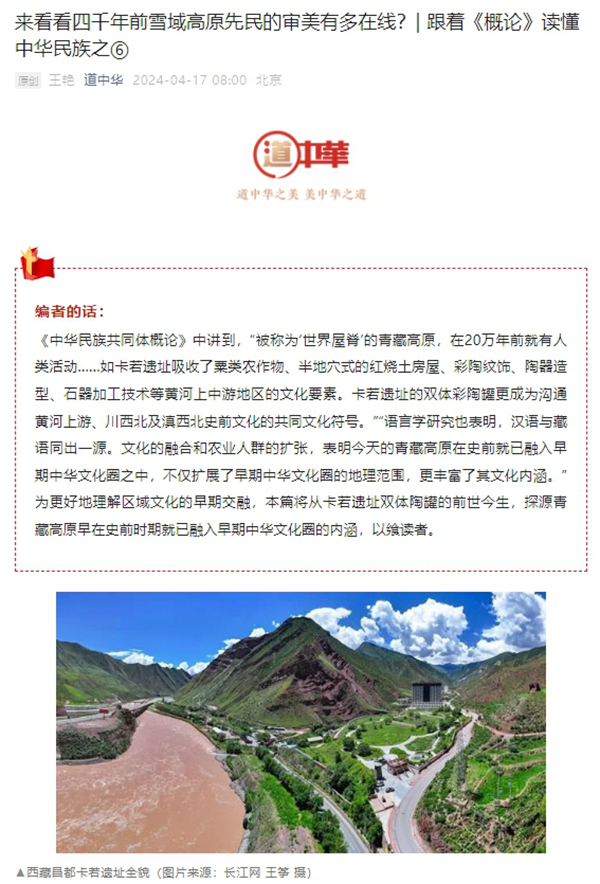 《中华民族共同体概论》中讲到,“被称为‘世界屋脊’的青藏高原,在20万年前就有人类活动……如卡若遗址吸收了粟类农作物、半地穴式的红烧土房屋、彩陶纹饰、陶器造型、石器加工技术等黄河上中游地区的文化要素。卡若遗址的双体彩陶罐更成为沟通黄河上游、川西北及滇西北史前文化的共同文化符号。”“语言学研究也表明,汉语与藏语同出一源。文化的融合和农业人群的扩张,表明今天的青藏高原在史前就已融入早期中华文化圈之中,不仅扩展了早期中华文化圈的地理范围,更丰富了其文化内涵。”为更好地理解区域文化的早期交融,本篇将从卡若遗址双体陶罐的前世今生,探源青藏高原早在史前时期就已融入早期中华文化圈的内涵,以飨读者。