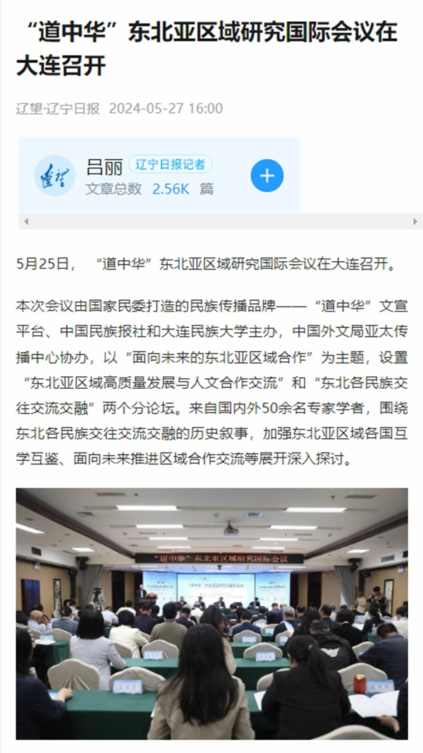 5月25日, “道中华”东北亚区域研究国际会议在大连召开。