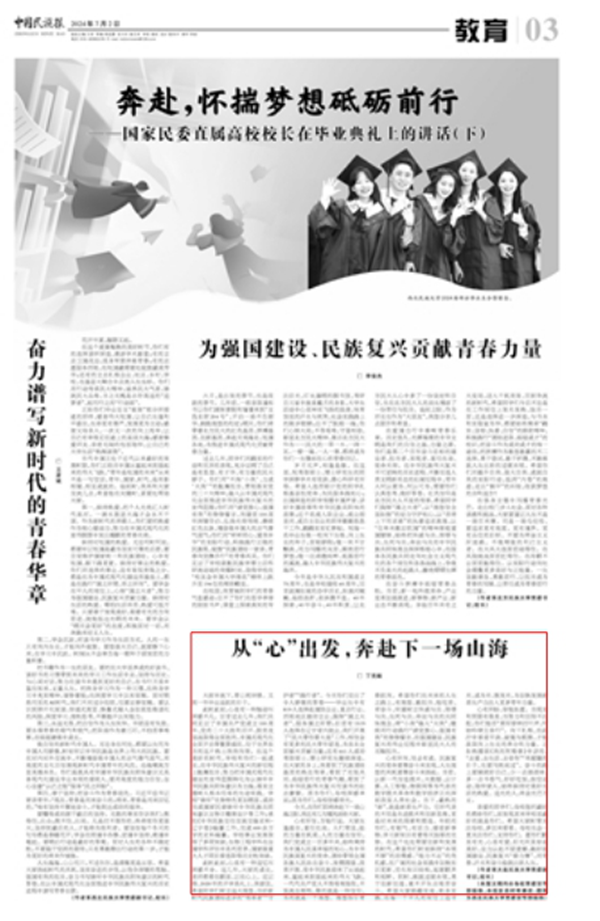 亲爱的同学们,母校想把最好的都给你们,却发现原来学校里最好的就是你们。希望大家时常关注母校,多回来看看。母校也会一直关注你们、支持你们。愿你们眼里有光、心里有爱,目光所及皆是美好,全力以赴不留遗憾,跑好强国建设、民族复兴“接力赛”,用青春、汗水和奋斗绘就出彩人生。