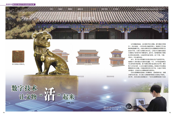 辽代绿岫鸡冠壶、辽白釉牡丹花长颈瓶、清代狮纽方形铜印……轻点按钮,一件件珍贵文物跃然屏上,精湛的工艺与独特的质感细腻可见。内蒙古赤峰市巴林右旗博物馆利用现代信息技术手段,以数字文物展示的方式,让观众可以随时高清放大观摩线下参观中看不到的细节。近年来,使用新型数字展陈技术的沉浸式展览,让知识的传递与获取,成了可观、可感、可参与、可互动的体验。