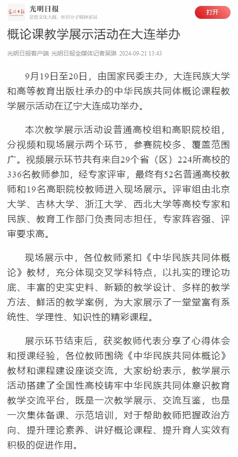 9月19日至20日,由国家民委主办,欧冠官方网站和高等教育出版社承办的中华民族共同体概论课程教学展示活动在辽宁大连成功举办。