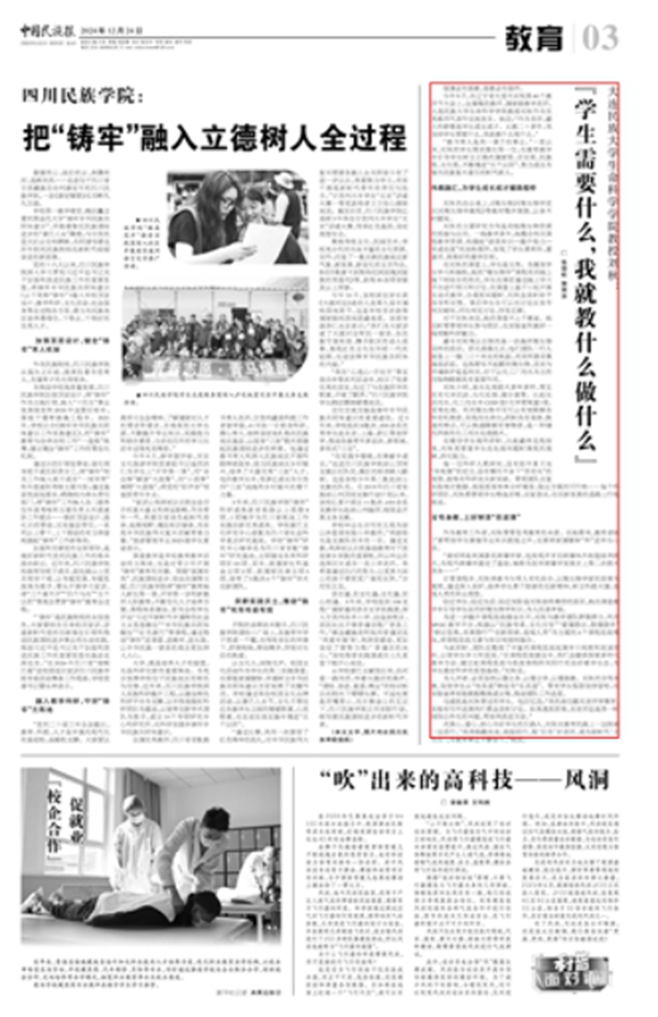 【中国民族报】欧冠官方网站生命科学学院教授刘秋:“学生需要什么,我就教什么做什么”