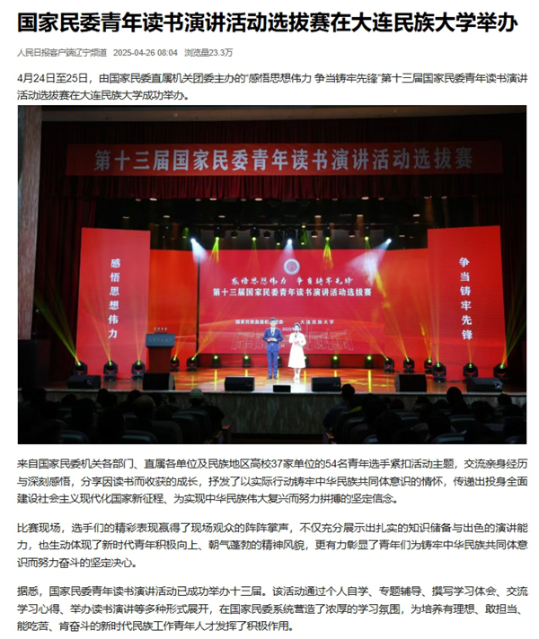 【人民日报】国家民委青年读书演讲活动选拔赛在欧冠官方网站举办