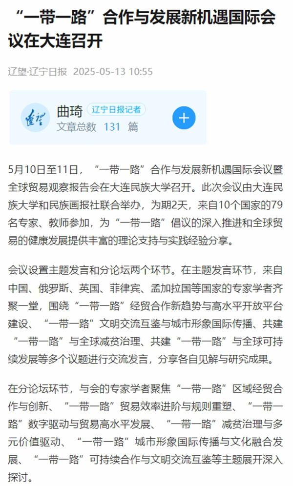 【辽宁日报】“一带一路”合作与发展新机遇国际会议在大连召开