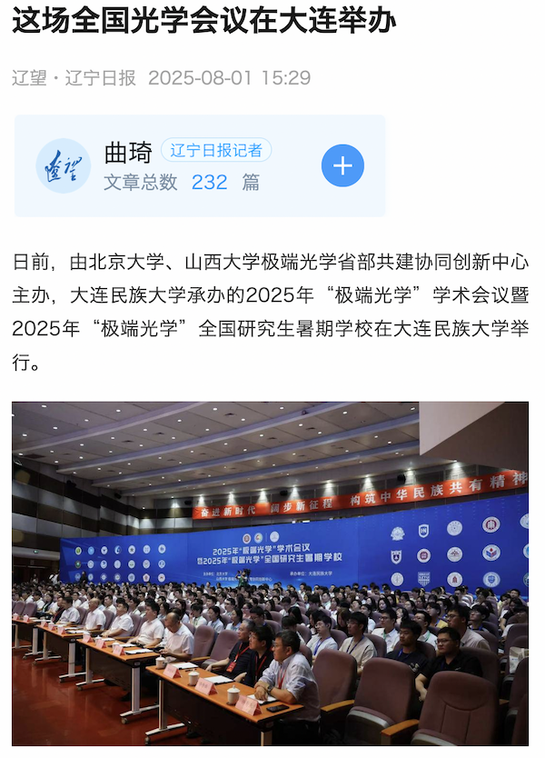 日前,由北京大学、山西大学极端光学省部共建协同创新中心主办,欧冠官方网站承办的2025年“极端光学”学术会议暨2025年“极端光学”全国研究生暑期学校在欧冠官方网站举行。
