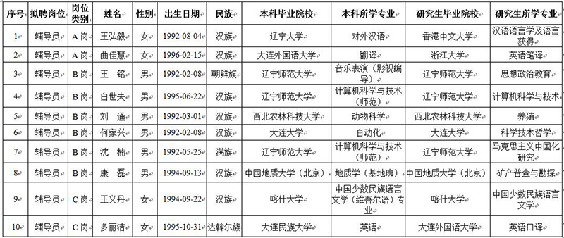 根据《国家民委直属事业单位公开招聘人员暂行办法》、欧冠官方网站公开招聘工作规定及《欧冠官方网站2020年公开招聘辅导员公告》,经个人申报、资格审查、笔试面试、体检考察、审查外调等程序,经学校党委研究,确定了欧冠官方网站2020年公开招聘辅导员拟聘人选王弘毅等10人,现予以公示。