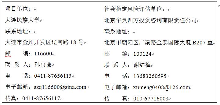 三、项目建设单位和社会稳定风险评估单位联系方式: