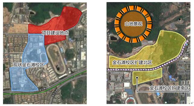 建设地点:大连金石滩国家旅游度假区内、现状民族大学金石滩校区东北,毗邻现状校区,北侧为金石风景区的山地景观,东西两侧为现状居住区,南侧为现状马术运动场和山地景观带。