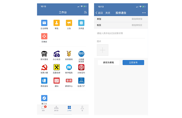 1.登录方式:点击欧冠官方网站“企业微信”,在“工作台”中选择“后勤报修”平台,点击“报修”。