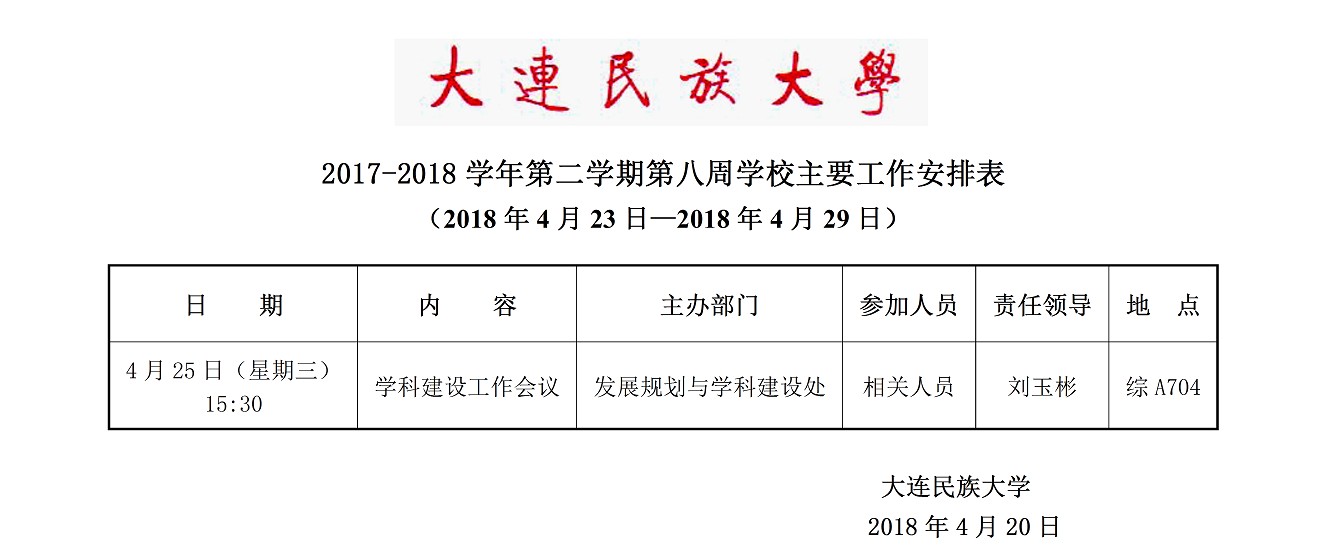 2017-2018学年第二学期第八周学校主要工作安排表