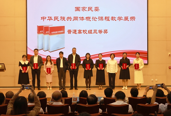 ▲普通高校组一等奖:中央民族大学孔新峰、新疆医科大学张新国、辽宁师范大学郑艳、中央民族大学王冬丽、中央民族大学陈丽明