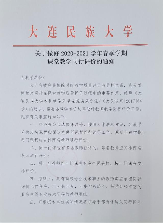 关于做好2020-2021学年春季学期课堂教学同行评价的通知