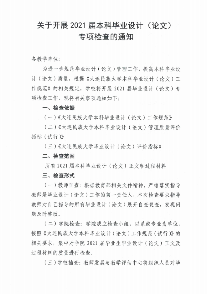 关于开展2021届本科毕业设计(论文)专项检查的通知