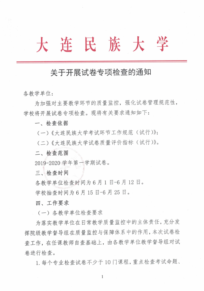 关于开展试卷专项检查的通知