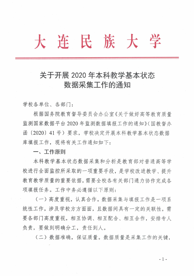 关于开展2020年本科教学基本状态数据采集工作的通知