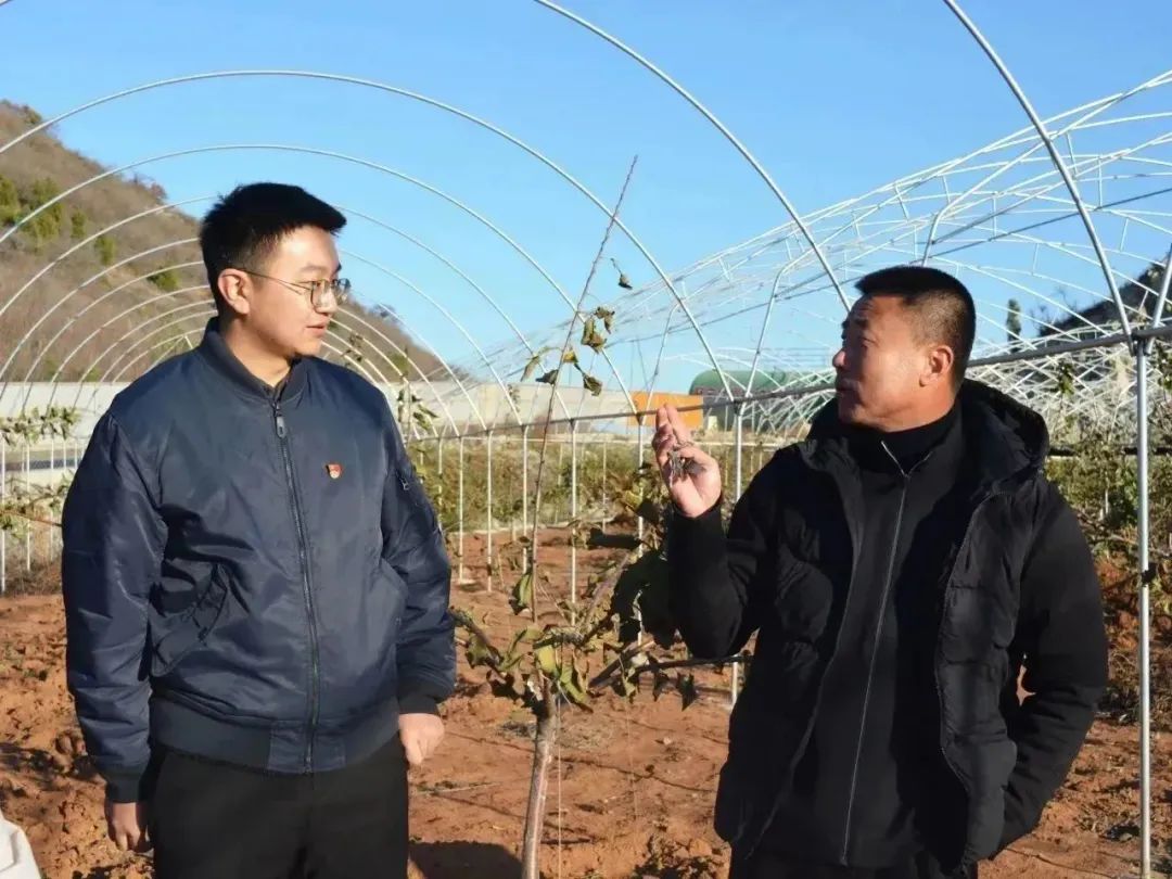 随后,师生一行人来到后海村樱桃种植基地,“把樱桃种在山坡上,再在樱桃园里撑起挡雨棚,雨水多的时候就不会受涝”,“通过‘压枝’,让一棵樱桃树分为三层,每一层的樱桃都能充分受到光照、享有足够的生长空间”……徐茂松书记仔细地向师生们讲解后海村樱桃种植的先进办法。