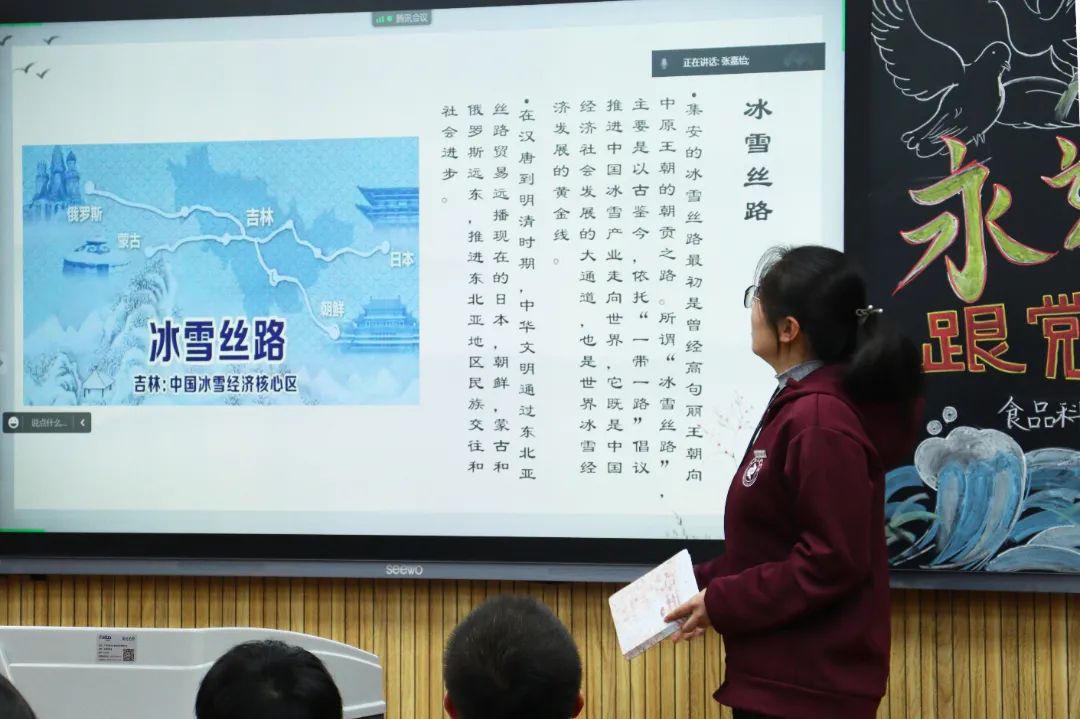 来自“冰雪丝路”上的吉林集安的梁津萍同学向同学们分享了自己家乡的历史、文化、美食,以及在党的带领下飞速发展的全新面貌。她说:“希望我们能够未来多用脚步丈量祖国大地,用心感受时代脉搏,积极响应旅游促进各民族交往交流交融计划,在中华民族大家庭中,像石榴籽一样紧紧抱在一起。”